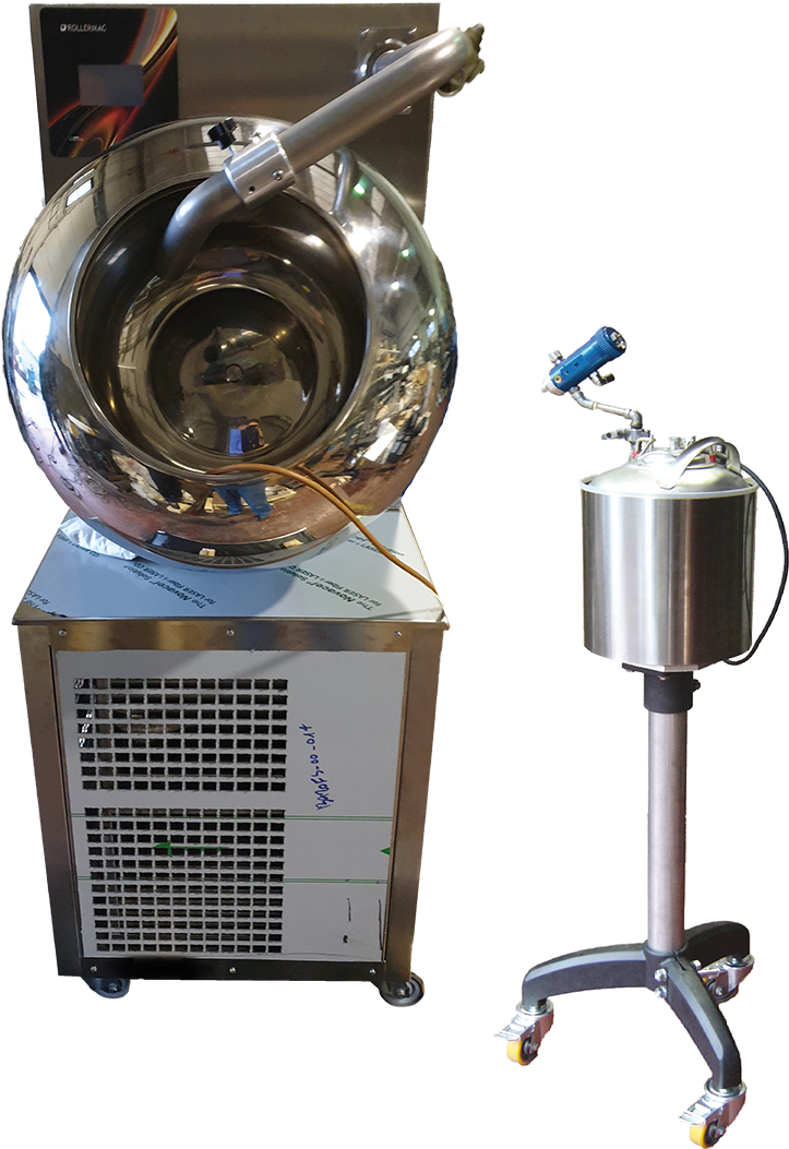 Patentierte Sprühsysteme für optimale Besprühung von Schokolade und Zuckerlösung. 9l, 18l und 50l