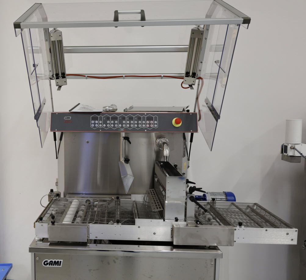 - Bei abgenommenem Gitterband ist die Maschine auch als Dosiermaschine verwendbar (z.B. Füllen von Formen)