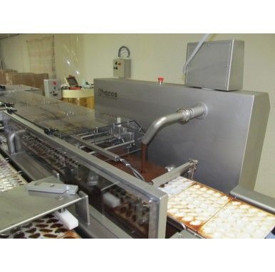 Die Lösung könnte die HML-720 Anlage von Hacos sein. Der größte Bruder der HML420 oder HML 240. Mit 12 Formen / min können so z.B. bereits ca. 1,5 Tonnen Tafeln pro Tag hergestellt werden (bzw. ca. 220 kg/h). Und alles mit dem Überflutungsprinzip. Das System ist hervorragend geeignet, wenn Sie sehr viele unterschiedliche Formen haben (275x175). Sie brauchen nicht für jede Reihe eine neue Düsenplatte besorgen. Die Anlage ist erweiterbar mit Kühlsystemen (Kühltunnel oder Kühltürme), Bereich zum Eingeben der Füllung,, Schließen / Deckeln der Form und finales Kühlen. Stück für Stück entsteht so eine komplette automatische Anlage. Gerne konzipieren wir die optimale Anlage mit Ihnen zusammen.