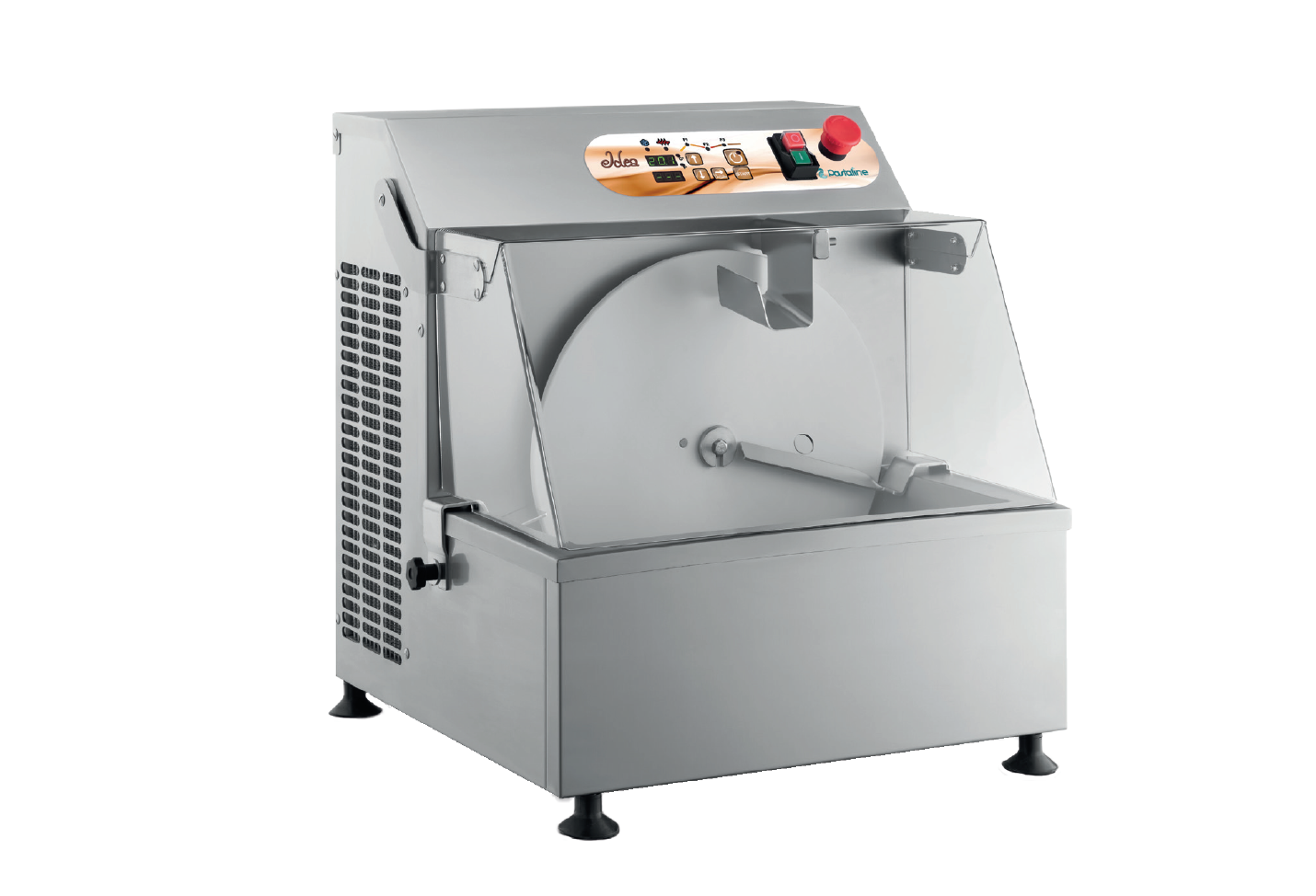 Die IDEA ist mit einem abnehmbaren Metallrad ausgestattet, das für eine perfekte Vermischung der Schokolade beim Schmelzen sorgt. Die Metallschiene an der Oberseite der Temperiermaschine sorgt für einen gleichmäßigen Schokoladenfluss zum einfachen und schnellen Befüllen der Formen. Die Polycarbonatabdeckung hilft, die Temperatur der Schokolade während der Haltephase konstant zu halten.